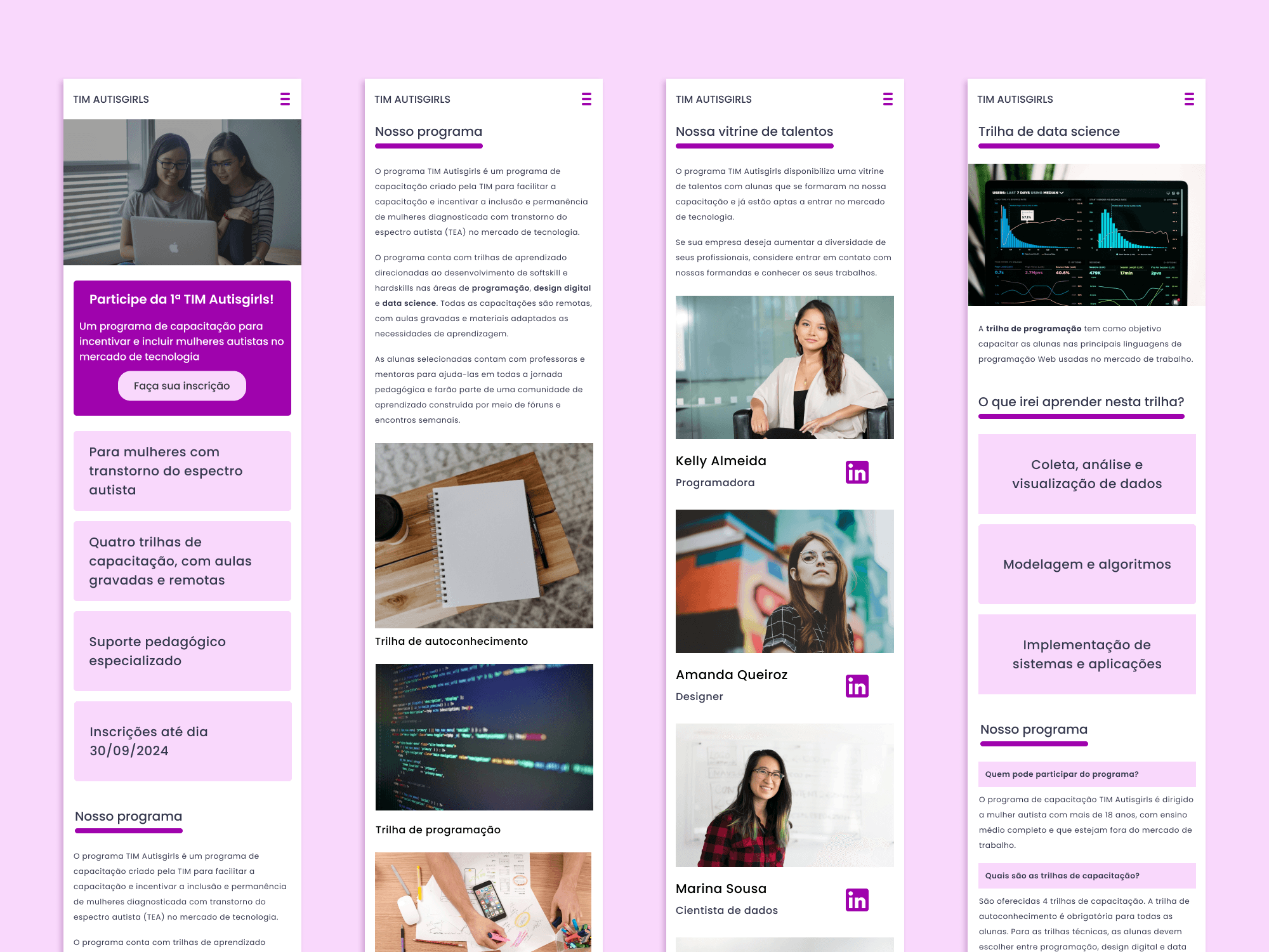 Oferecer capacitação para incentivar a entrada e permanência de mulheres autistas na tecnologia a partir de trilhas educacionais em programação, design digital e data science dentro da empresa patrocinadora do Hacking Rio 2024, TIM.