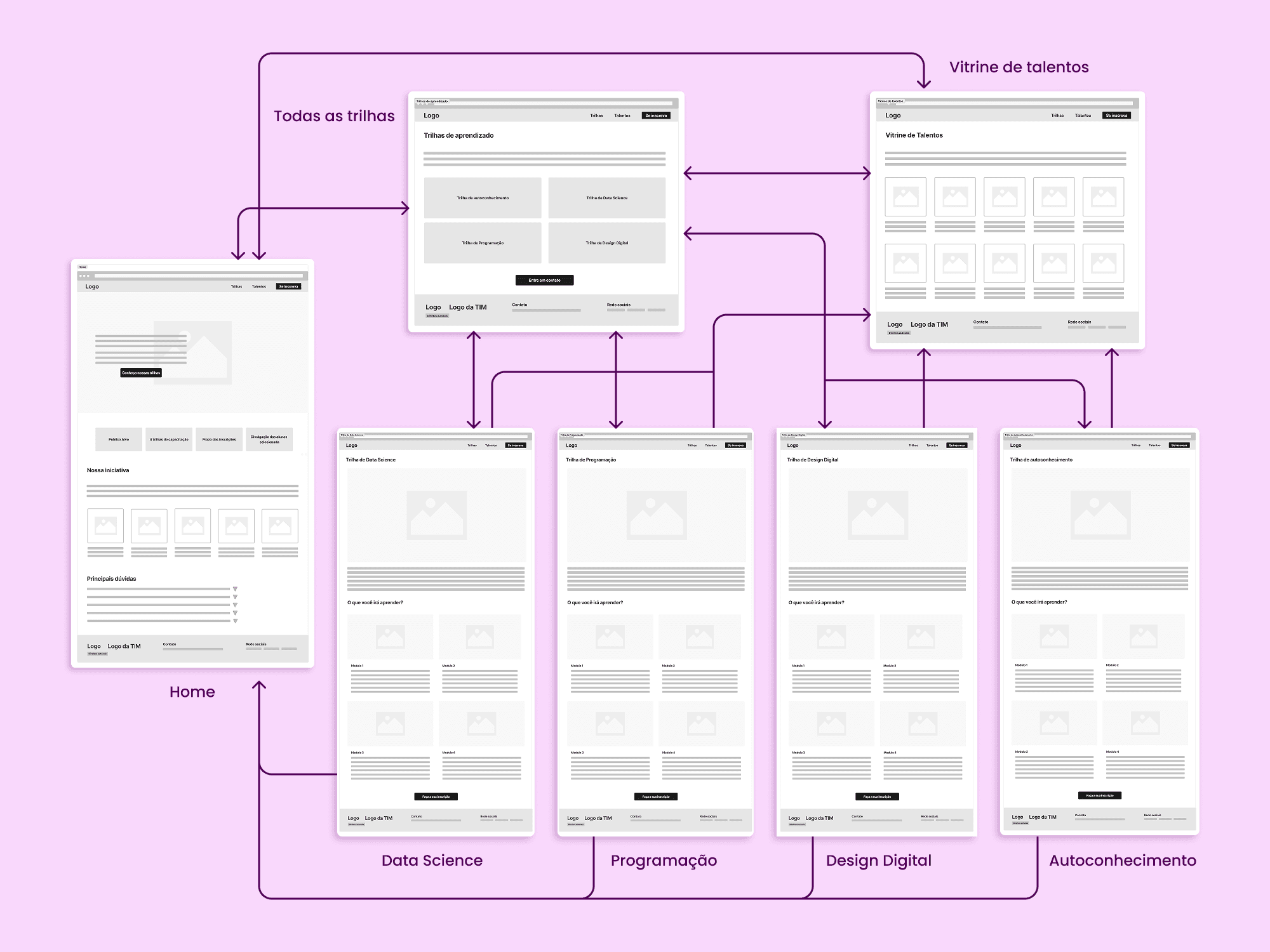 Baseado em metodologias de design thinking de produtos e serviços, esse projeto seguiu as seguintes etapas.
